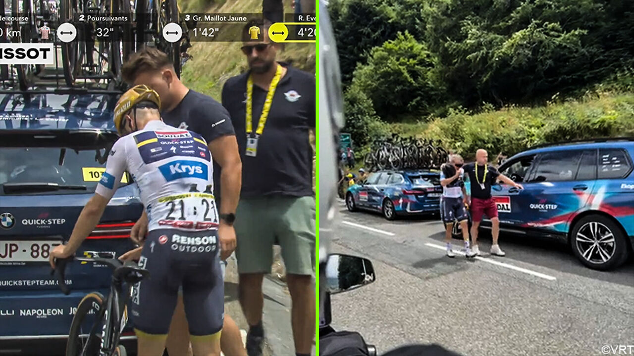 Einde verhaal voor Remco Evenepoel (25) in de Tour de France: onze landgenoot heeft de Ronde van Frankrijk verlaten langs de achterdeur. Evenepoel was al enkele dagen op de sukkel in de Pyreneeën. Zijn tweede Tour uit zijn carrière loopt zo met een sisser af.